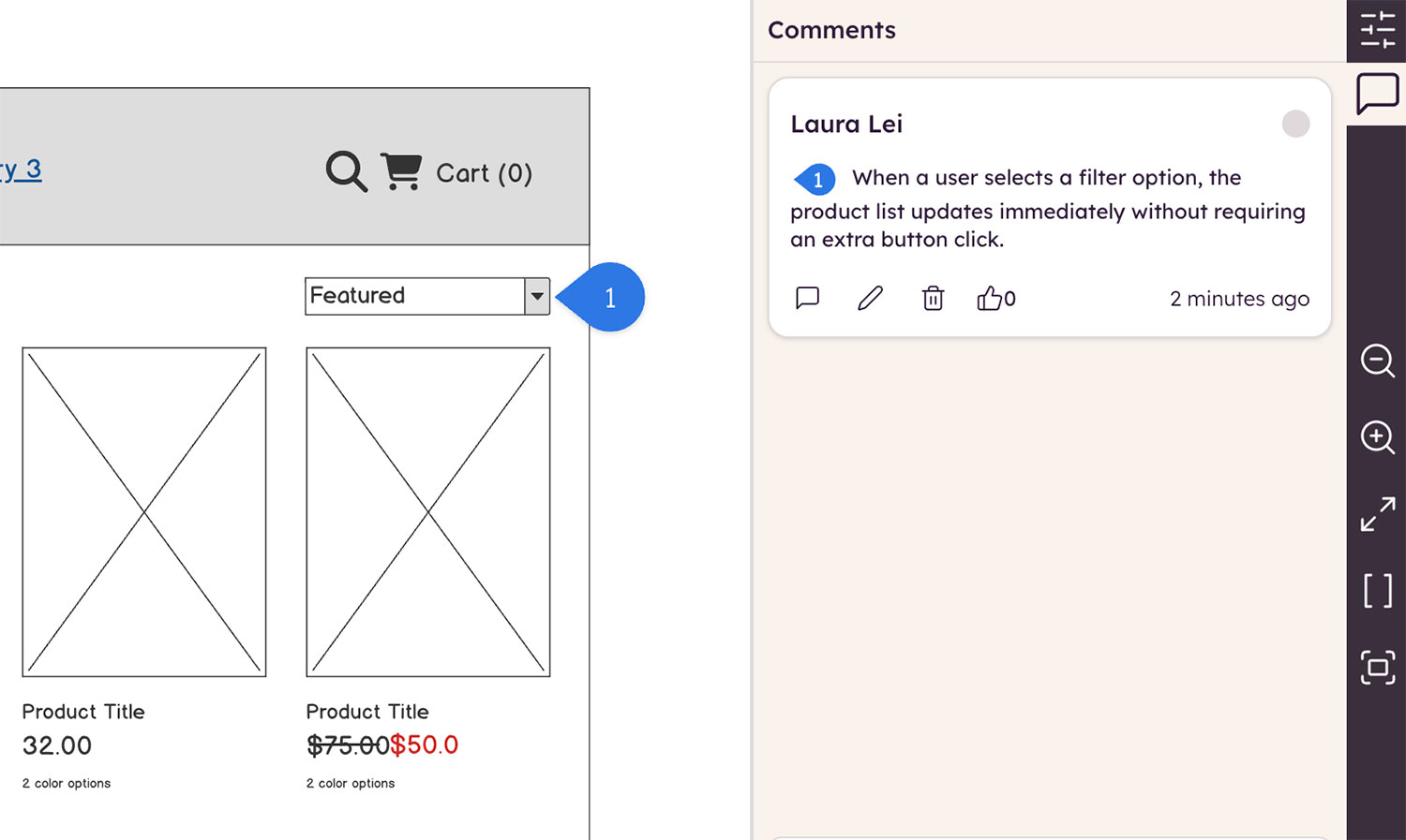 You're designing an e-commerce site, and your wireframe includes a filter dropdown for sorting products by price, popularity, or category. Without a functionality annotation, developers might not know whether the filter should update the page in real-time or make users hit a separate “Apply” button.