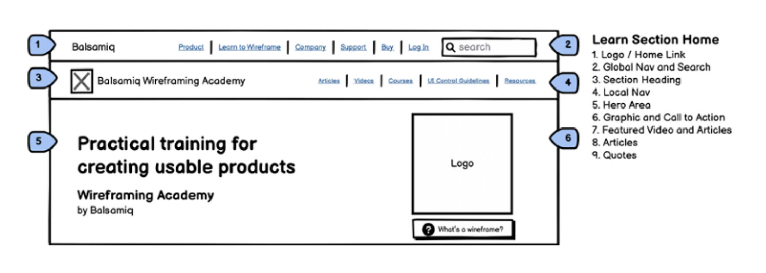 2. Use numbering for clarity and to avoid clutter Use numbered callouts within your wireframe and add annotated notes in a separate area.