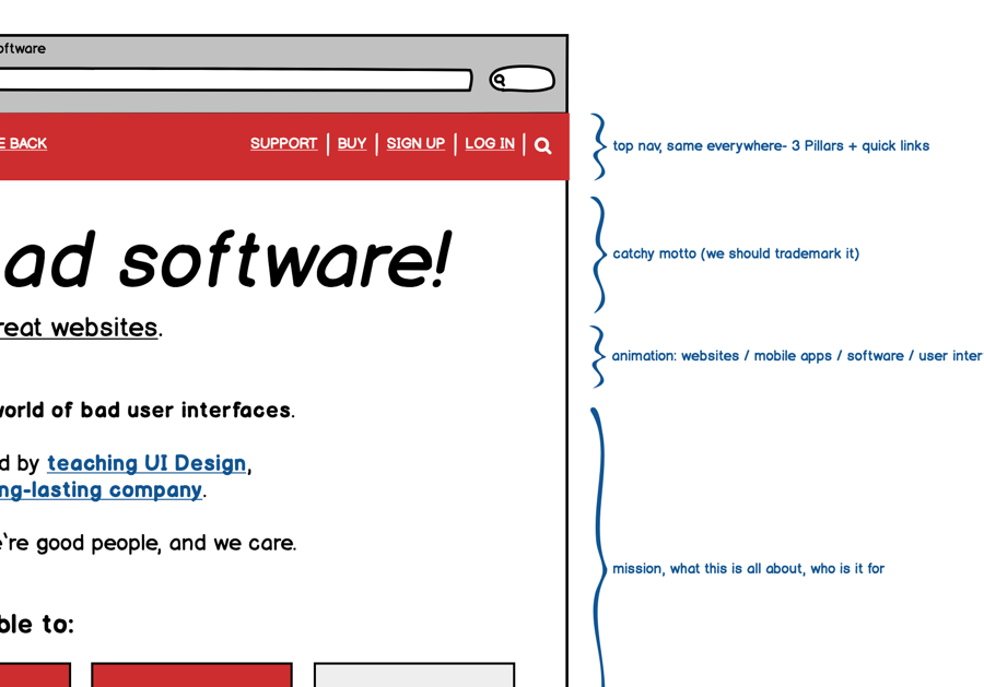 You may have a few annotations to call out the functionality of what you’re thinking at a first pass. As you get your ideas onto your wireframe, remember to add comments for yourself. Treat these initial comments as helpful reminders of your thought process when building so that you can easily pick up from where you left off.