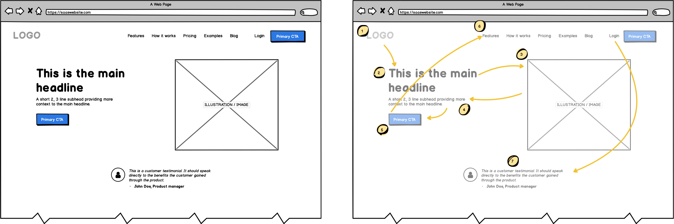 In general, make sure that your above-the-fold section is not crowded with text, that it suggests to readers what to read first, second, third etc. and that it helps them get a basic understanding of your product.
