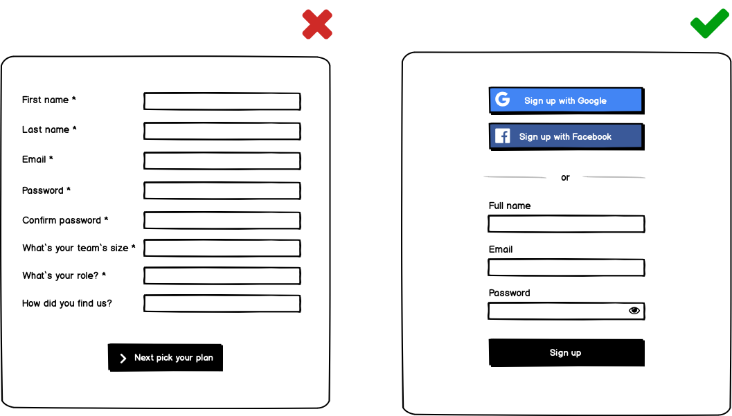 • Only ask for what’s necessary at this point. Keep the marketing questions for later.