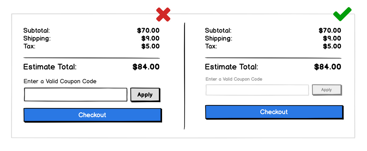 If your site has promotions running daily, then having a prominent coupon code input field is just fine, but if you only have them every so often, you may be causing your users to leave your site to start googling “<your company name> + coupon code.”