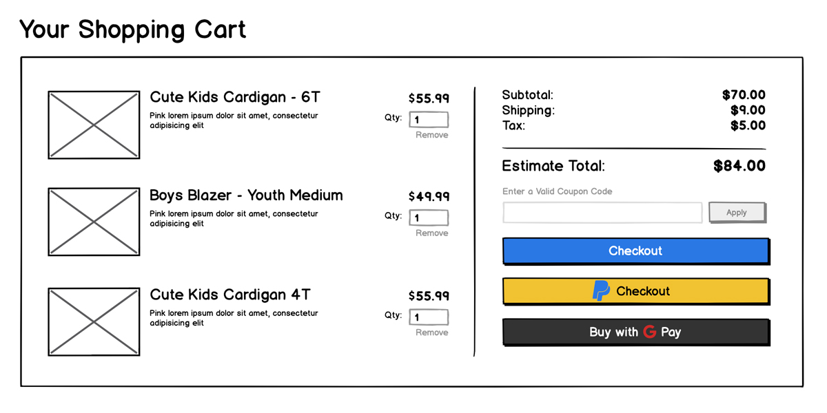 Effective cart design relies on a combination of scannability and proper use of inputs and buttons. What would you say are the most important pieces of a properly designed cart? I’m sure you’d want to review the contents and prices of each product. Also, you’re going to want to know the total cost and the payment options.