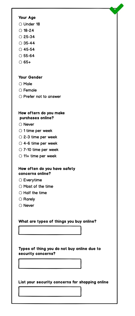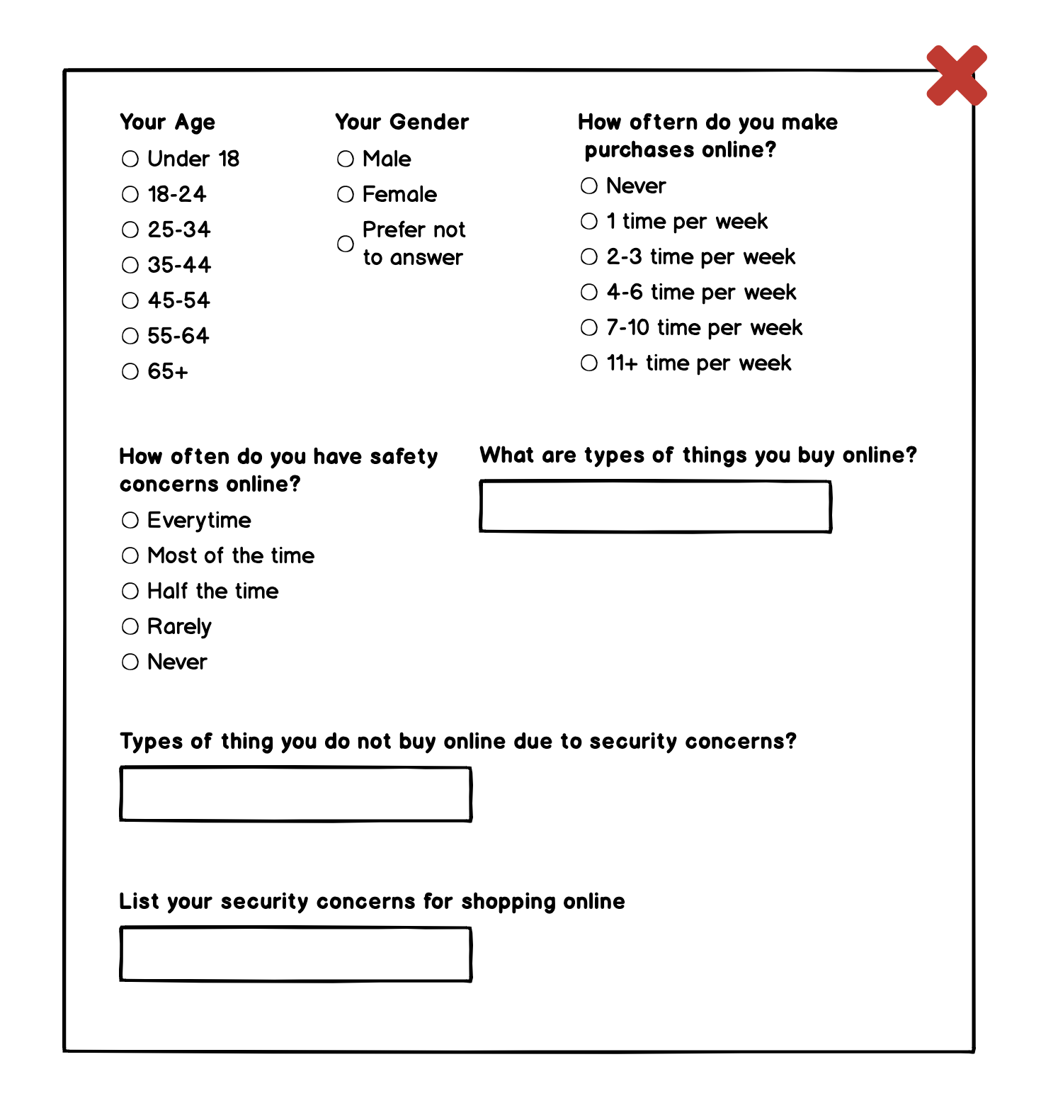 Think, what is the bare minimum I need to ask in order to allow the user to continue? What information can I gather from them later? The more information you ask on a form, the less likely they are to be completed. Also the more time it takes to fill out a form, the more people will question the need for answering them. It will start to feel like an interrogation.