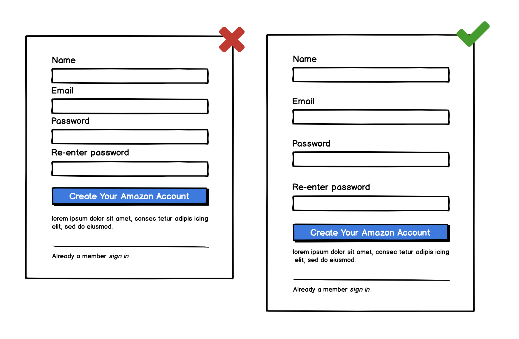 Look at these 2 forms side-by-side. The only difference is that there is more space between the fields in the second. Looking at the one on the left, you're not sure if the label is meant for the one above it or below it, and your eyes get lost. You can’t easily scan it. Adding a little space will make sure there is no doubt which label goes to which input field.