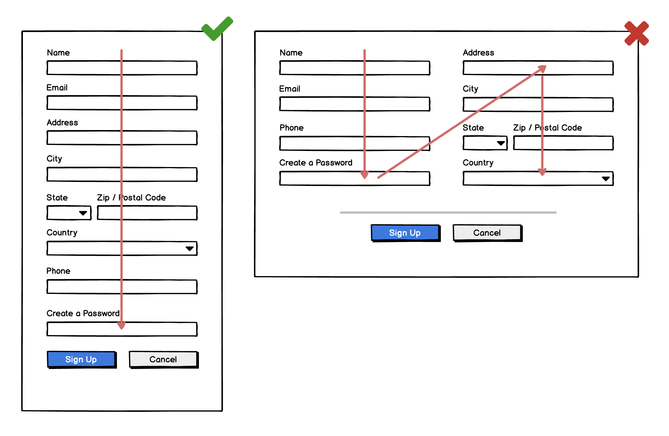 However, if the form is more than just a few fields it becomes difficult to scan and keep track of your place in the form.
