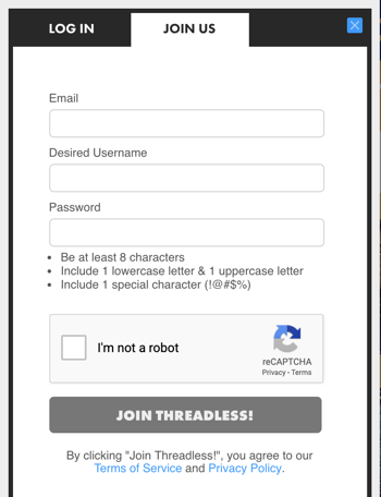 We only asked for the absolute bare minimum we’d need to create an account. If the user wanted to give us more information, they could, in their account area, after they signed up.