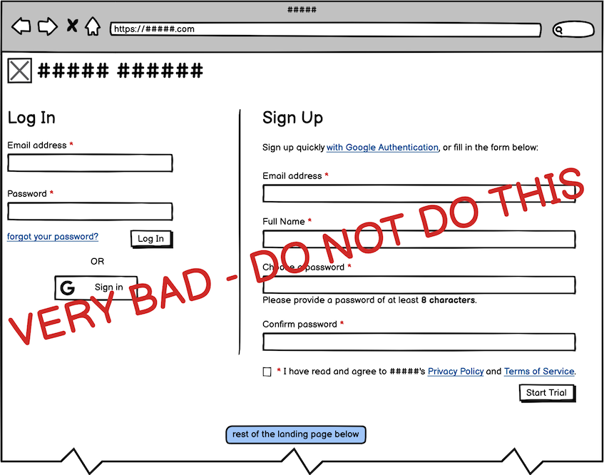 For these reasons, we suggest having the sign-up form live inside the landing page. In fact, we do the same for the login form as well!