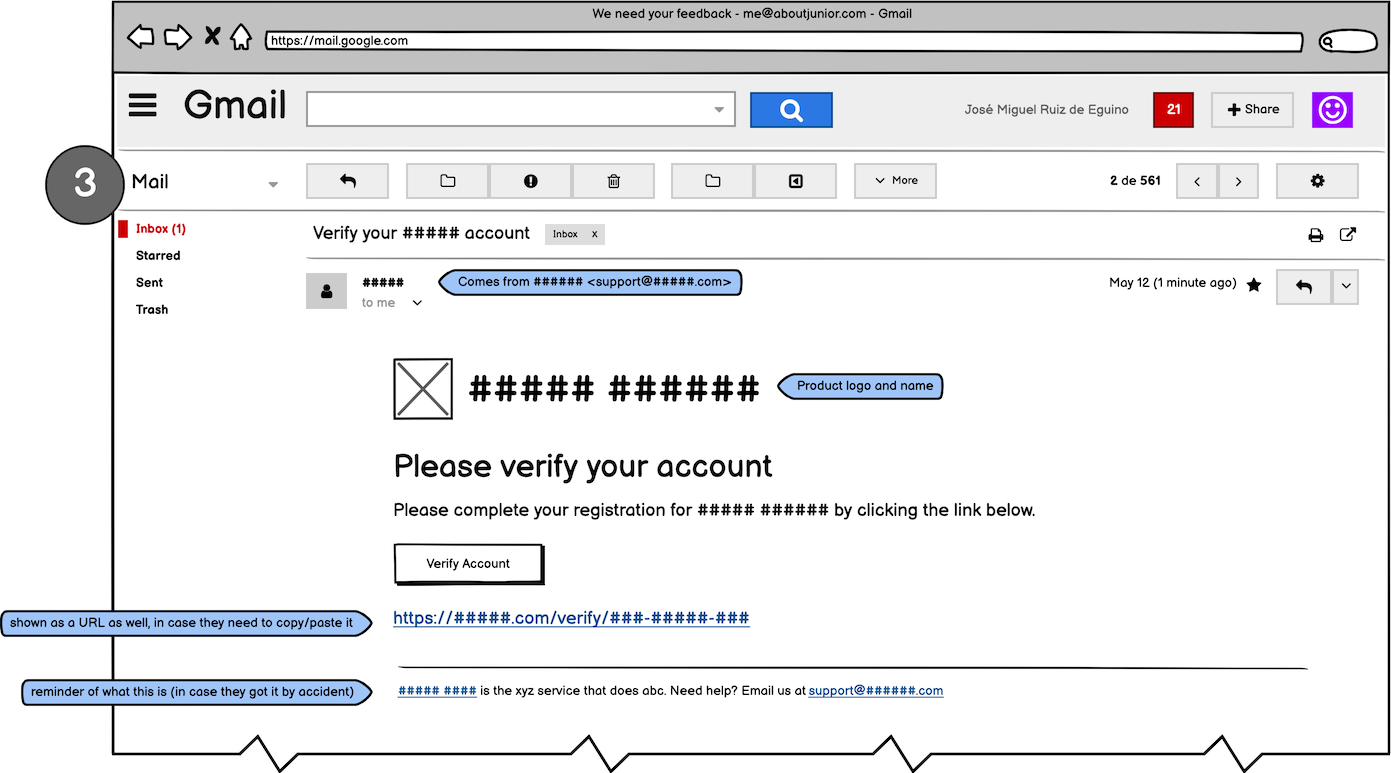 - It shows the verify URL both as a button and as a link. This is useful for old email clients, or if people need to copy/paste the link instead of clicking (it happens more than you'd think).