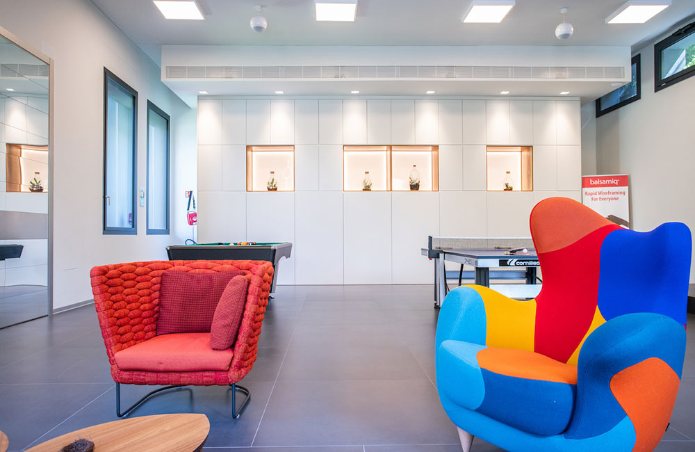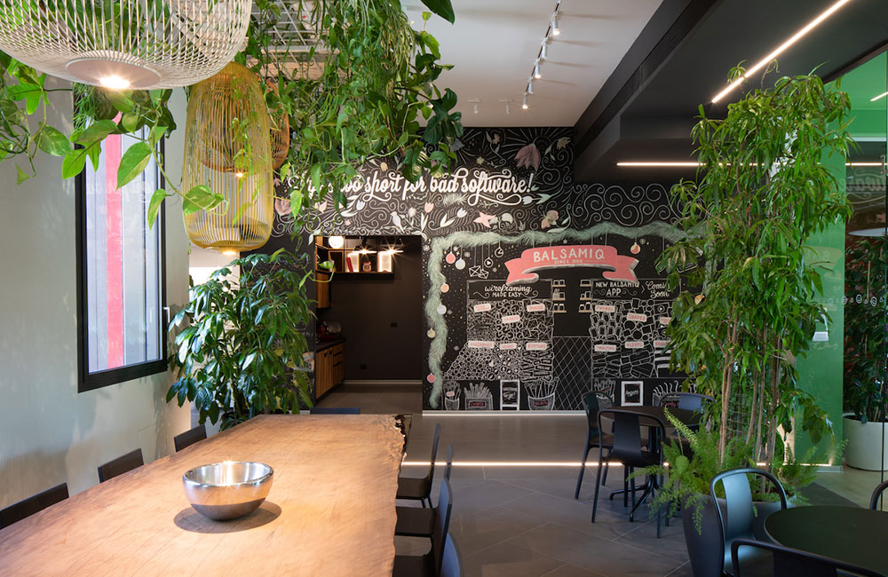 That's when we decided to build ourselves a space. It's an office, but it's not really an office. It's more of a space that Balsamiq employees can call home, regardless of where they live. It's a home-base where we can all get together for our yearly company retreats, or where teams can gather to have mini-retreats to kick off new projects or spend a few days together in person. It's also a space to host conferences and events, and social gatherings for our employees and their friends and families. It has enough desks to fit us all, and is used as an office once in a while by some of our Italian employees. Moreover, it is a tangible representation of the Balsamiq brand. Being in software all we do is digital... Other than some SWAG items, we don't have anything in the real-world that showcases our Balsamiq values.