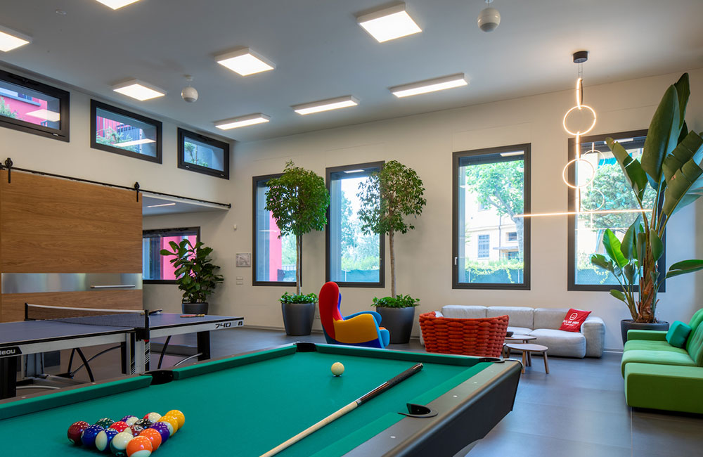 Because we have a big group of people in Bologna, we've had an office there since 2010. For many years, we had a boring, as-plain-as-possible office, because we didn't want our non-Italian employees to feel like they were missing out. After a few years we realized that this situation was short-changing everyone involved: those outside Italy still felt like they were missing out on important conversations, and those located near Bologna had a lame office to work at.