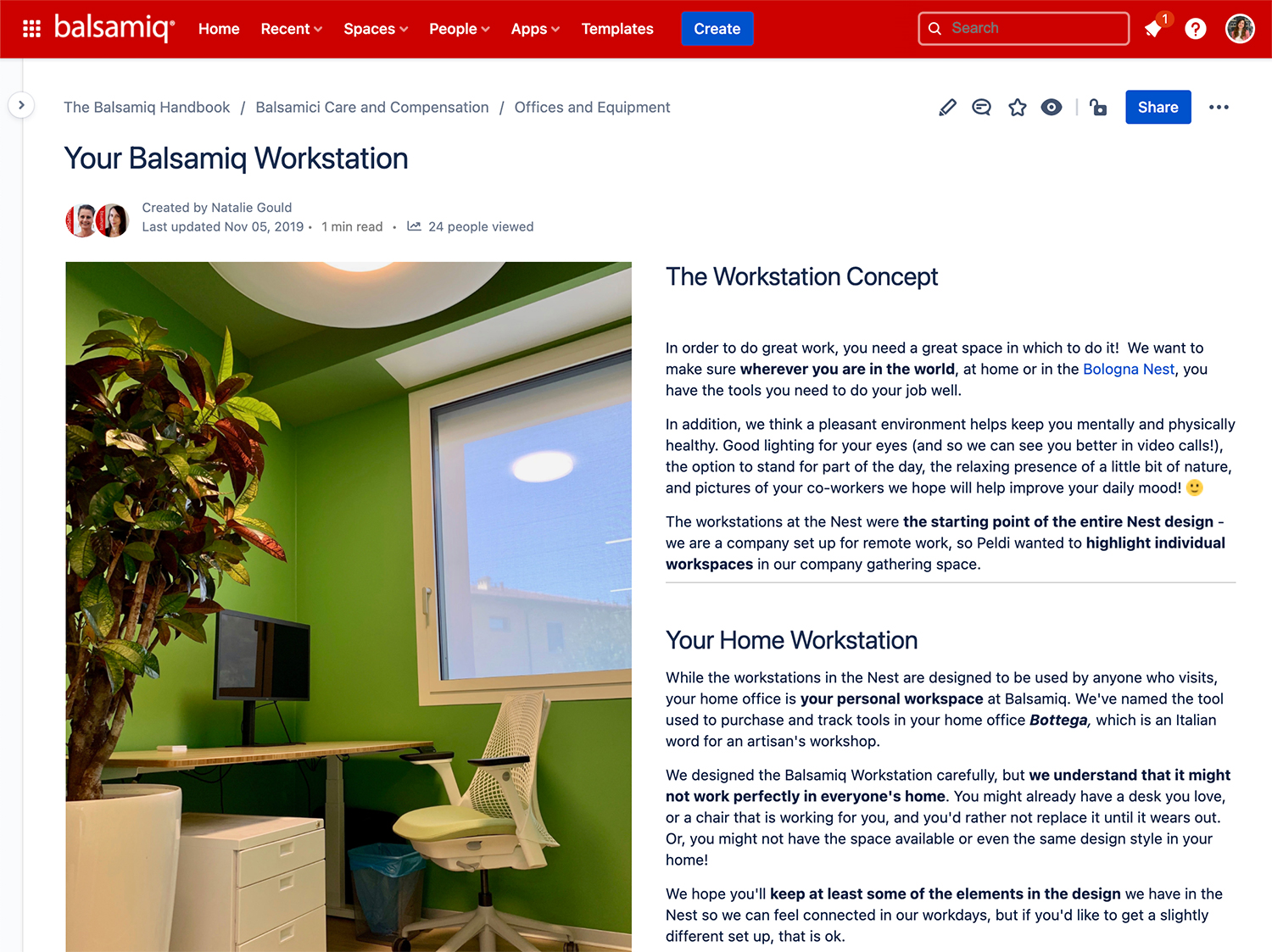 The idea is for everyone at Balsamiq to have access to the same high-quality desk, chair, cabinet, laptop, monitor, lamp, trash can, and even plants, regardless of where they live and work. So we designed a home office workstation, and told everyone at the company that we would buy them those items if they wanted them and they fit in their home offices.