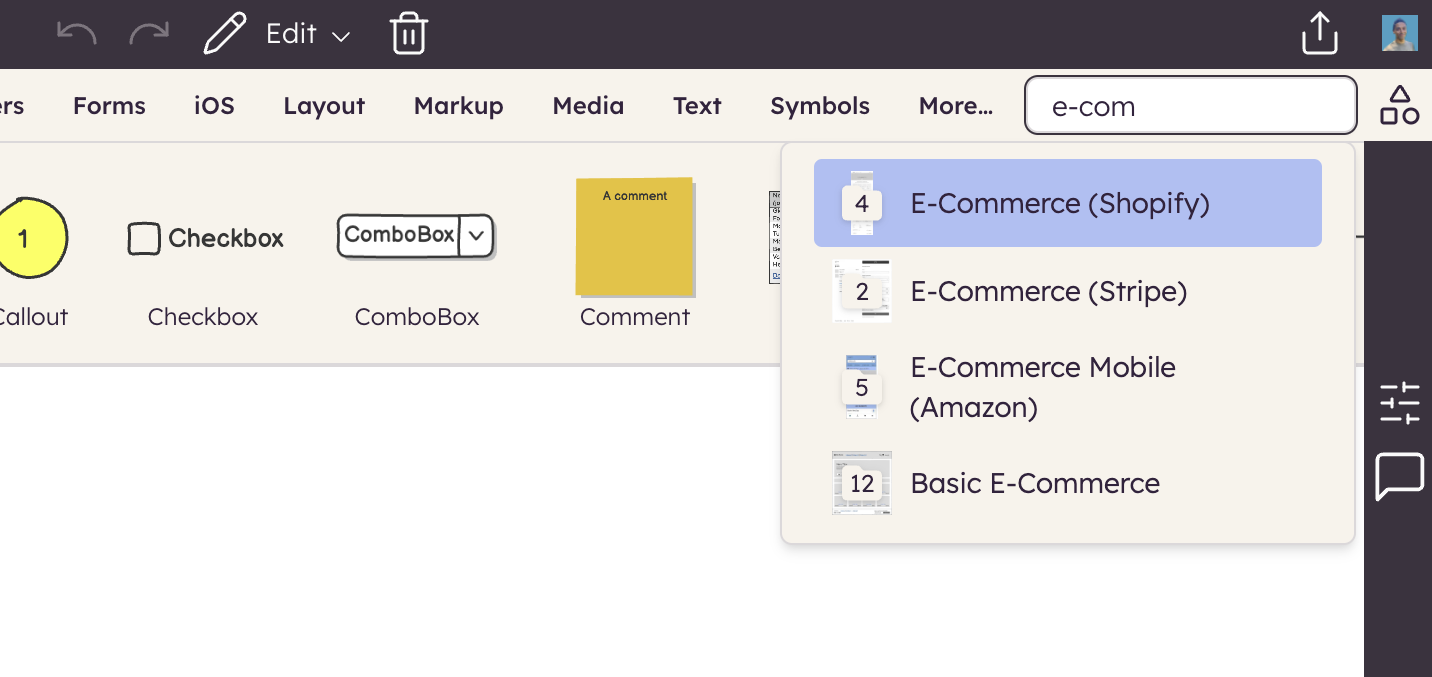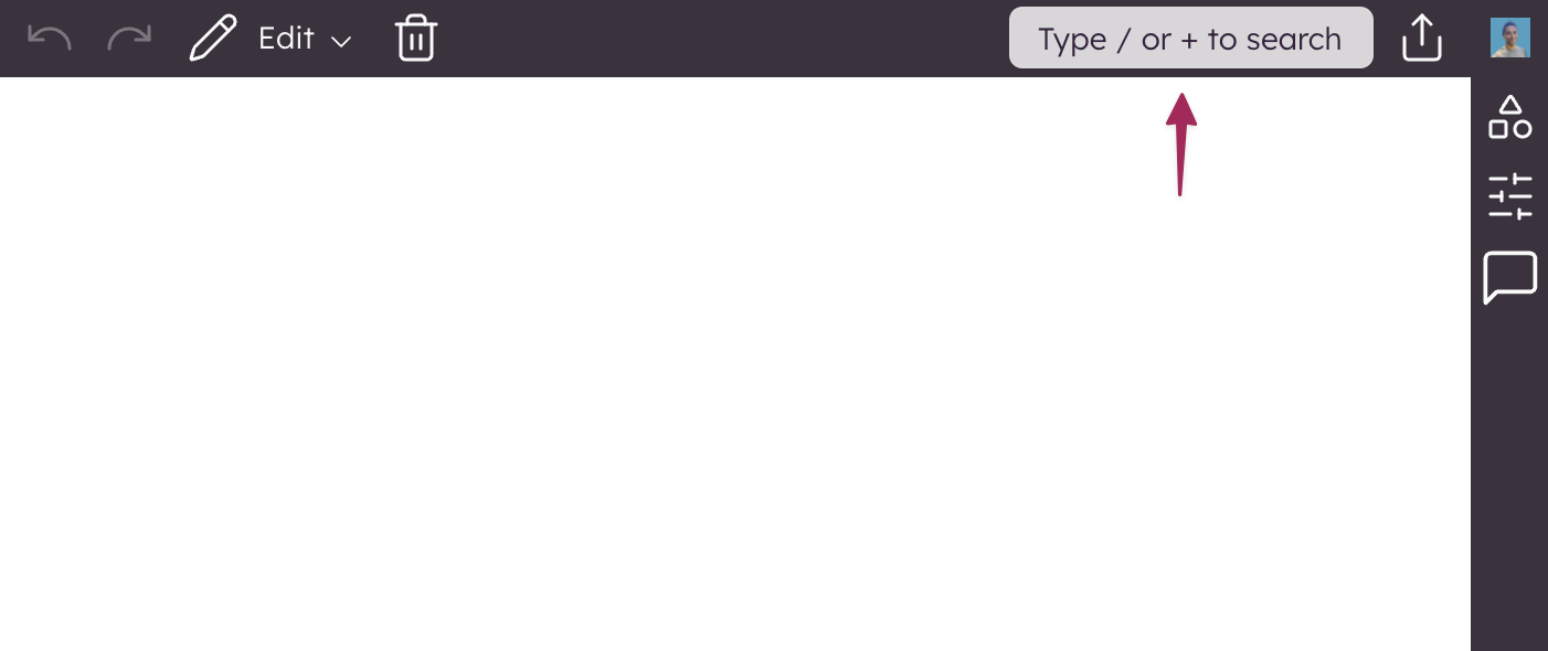 Using search is the quickest way to add content to your wireframes. To use search, click anywhere inside the input box (or press / or + to enter it).