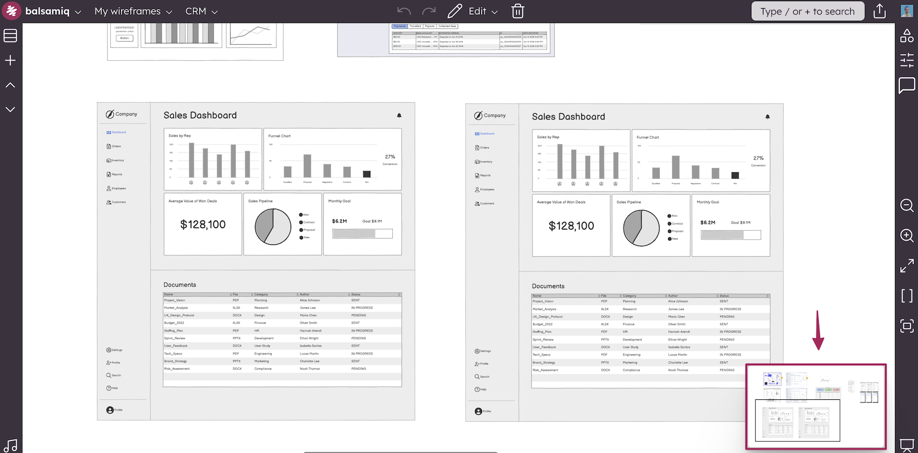 When you zoom in or out, the Mini-map appears to help you navigate large wireframes with lots of screens or pages.