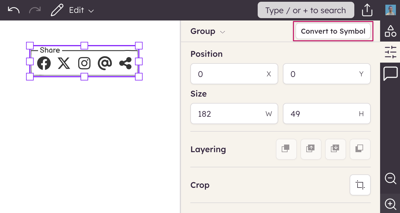 Creating a Symbol starts with grouping the set of controls that you want to become your Symbol. You can create a new group or use a group you already have. The following steps assume you are creating a new group.