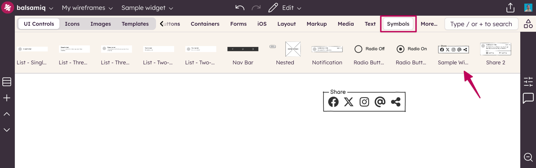 This new Symbol will be displayed in the Symbols category of the UI Library for all wireframes in your project so that you can add it to any wireframe.