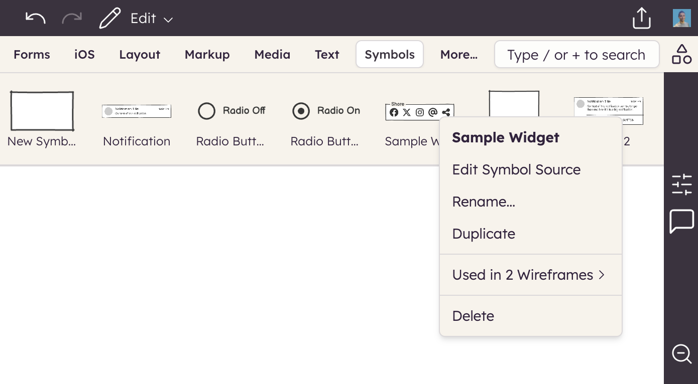 Note: Just like images, deleting a Symbol from a wireframe does not delete the Symbol, only that instance of the Symbol.