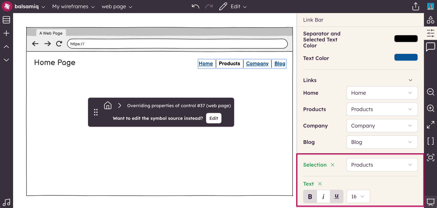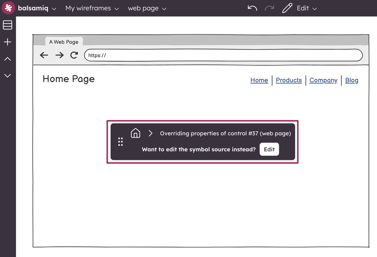 At this point, you can manipulate each control inside the Symbols at will, as if you were editing a group. Some operations are not permitted while overriding Symbol properties, such as adding, deleting or grouping controls. If, instead, you want to edit all instances of the Symbol, click the "Edit" button.