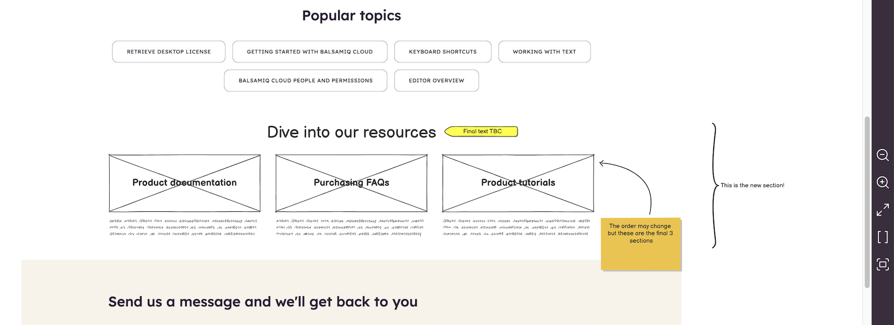 Once you’ve added your new UI elements, what you’ll have is what’s called a “mixed fidelity wireframe”, in which some parts are high fidelity (the screenshots) and some are low (your new feature).