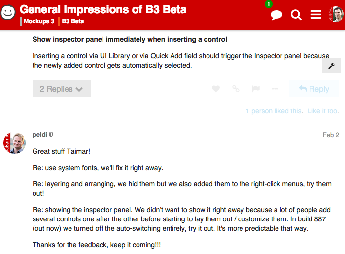 While it was hard to take some of the tough feedback, the overall feeling of connecting and communicating directly with customers was energizing. For the old-timers at Balsamiq it took us back to the early days in the GetSatisfaction forums around version 1.