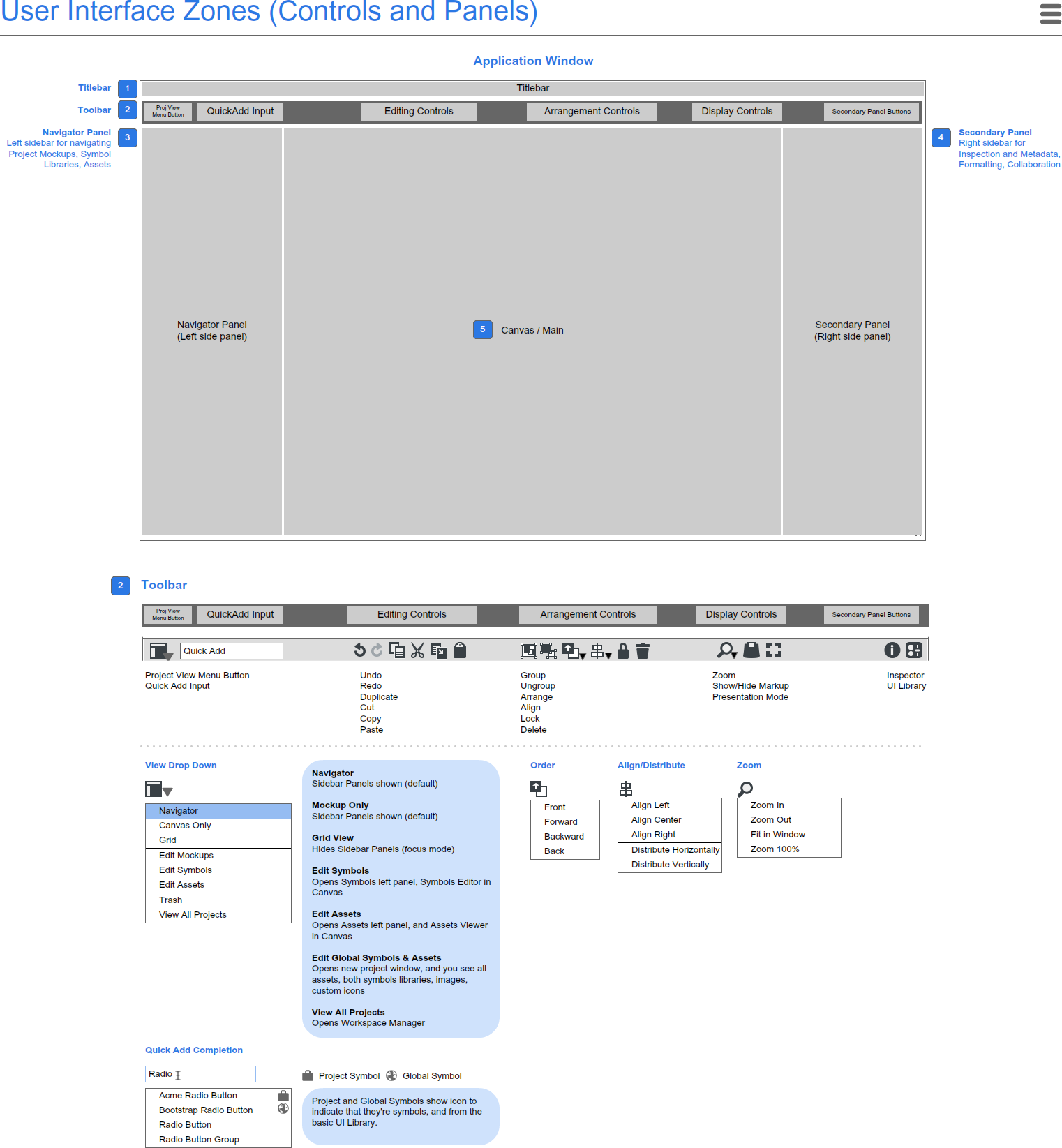 We left that question alone and went back to something more certain. We knew that we wanted the UI layout to have the mockups on the left, the canvas in the center, and the UI Library and Properties on the right. So we just started calling what we were working on Panels because of the UI “panels” on the left and right.