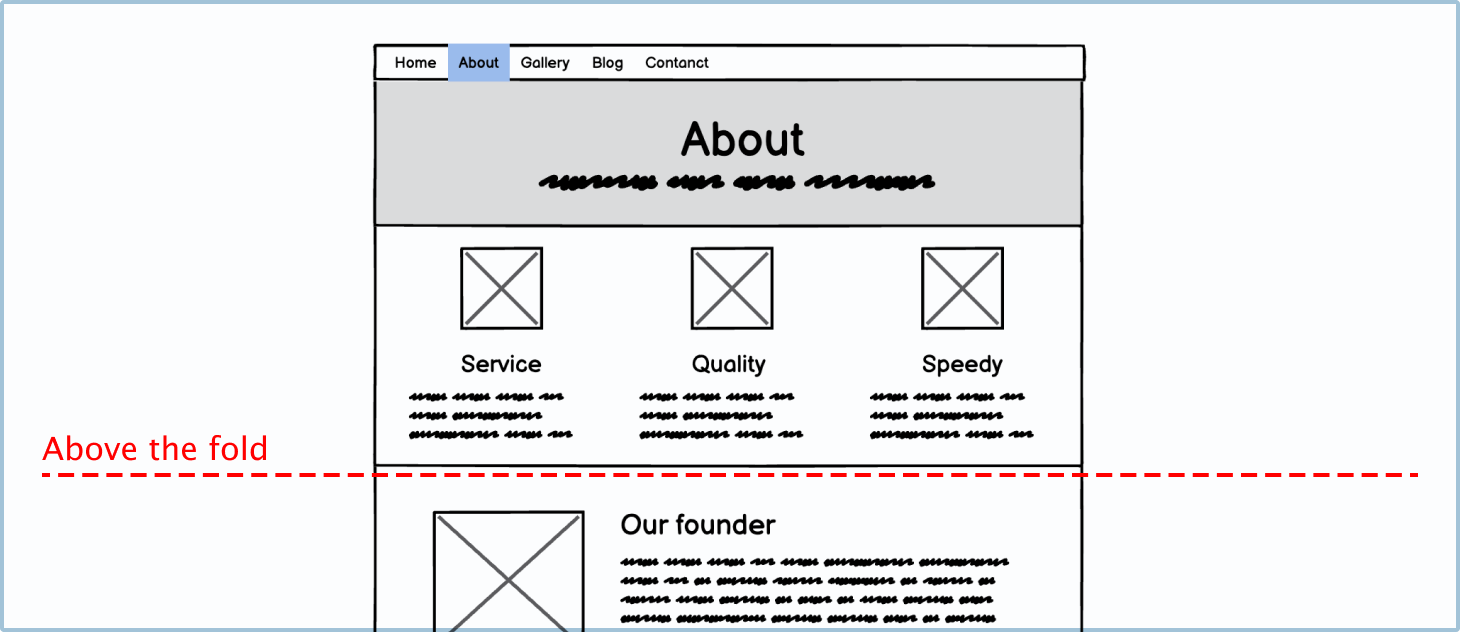 Jargon: Above the fold To have content above the fold means that all the important information is visible to the user when they first load the website and before they start scrolling. This phrase and thinking comes from newspaper printing, where the most important information had to be on the top half of the front page to be visible without opening it.