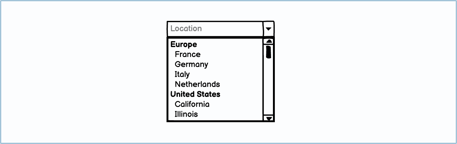 A scrollbar is needed in instances where there are a lot of items in a dropdown menu. The general rule is that only 6 to 10 items should be visible in the dropdown.