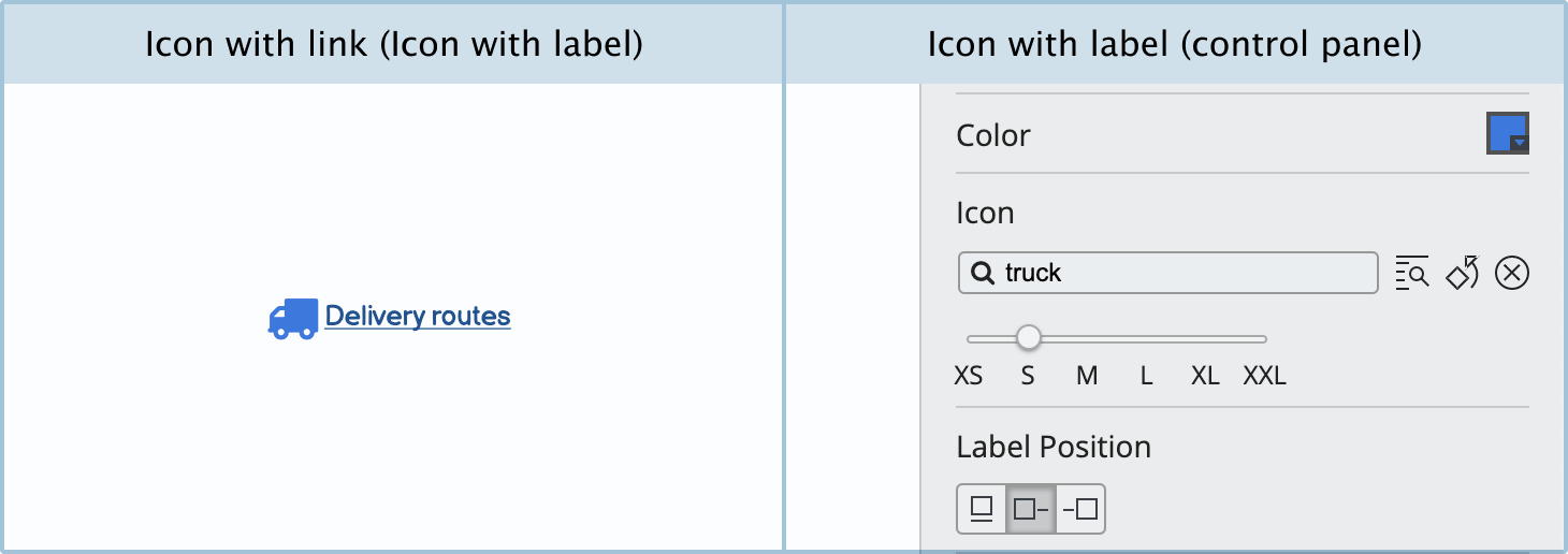Icon with link: You can create more attractive-looking links by just using the icon with label control. Just select a relevant icon from the icon search, and make sure to put square brackets around the text in the edit view.