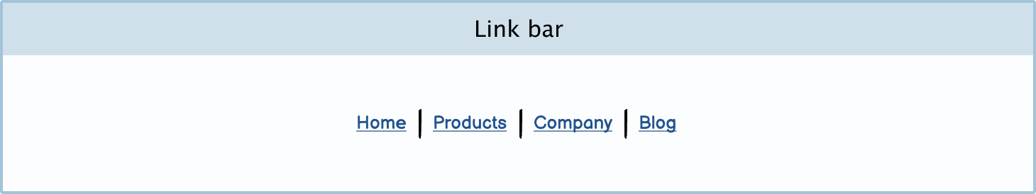 Link bar: A link bar is a collection of links. You can use it at the top of the page as primary navigation or at the bottom of a page, like a footer.