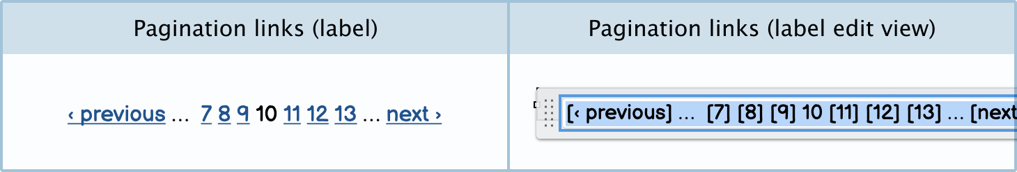 Pagination links: You can create pagination links using a label control. Just put square brackets around the words and numbers you want to be linked. Remember not to make the current page a link so that it’s clear that you can’t navigate to it.