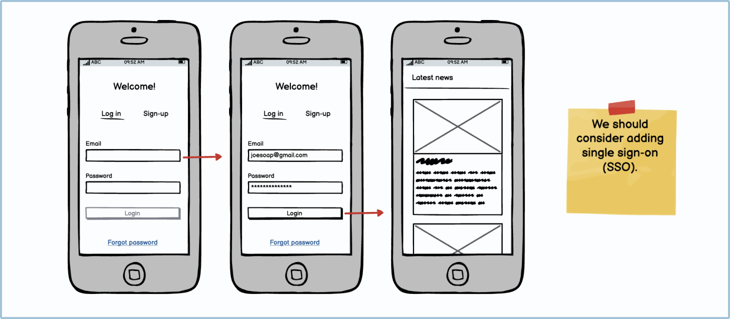 Because wireflows show the big picture of the product, annotations become quite important as they allow reviewers and other stakeholders to understand how all the screens fit together. It is also beneficial to have an overview of all the possible journeys the user could take.