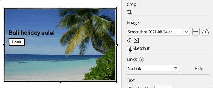 How to in Balsamiq In Balsamiq, you can use the "Sketch it!" checkbox in the property inspector to quickly make a sketch or rough version of an image.