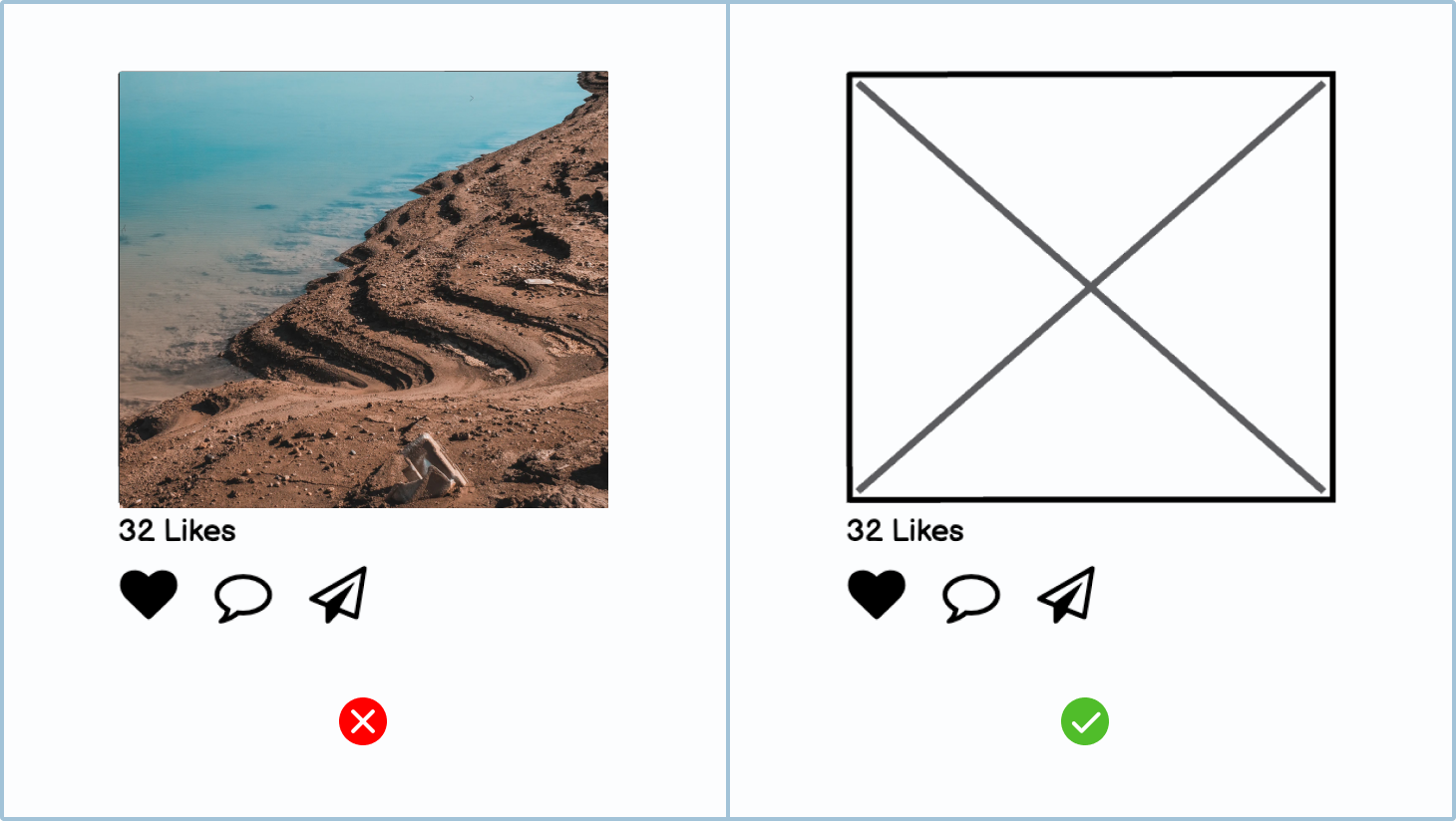 One of the benefits of wireframing is creating and showing concepts and designs as quickly as possible. At best, trying to find the perfect image to add to your wireframe takes time. At worst, it can confuse your audience if the image isn't quite right.