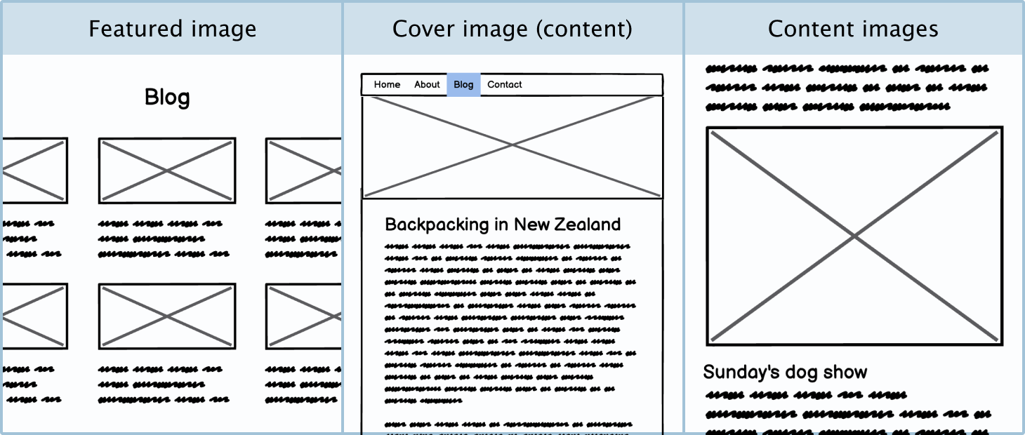 Cover image (content): A cover image will usually be a full-width image at the top of a page in an article or blog post. It can also be used to break up sections of an article.