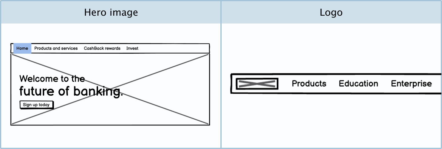 Logo: A logo represents a company’s identity. If you don’t have the company’s logo on hand, you can use an image placeholder as a representative in your wireframe.