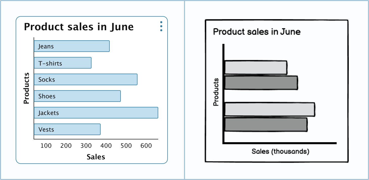 - You want to show exact numbers and not a ratio.If you have a lot of items or categories on the y-axis.