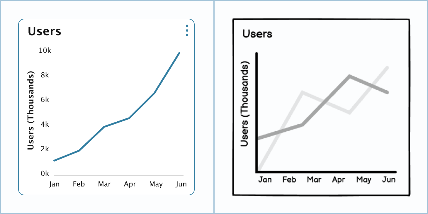 A line chart is used to measure the growth or decline of a specific variable over time. Line charts are often used in financial services or investment platforms to show users how much their investments have grown over time.
