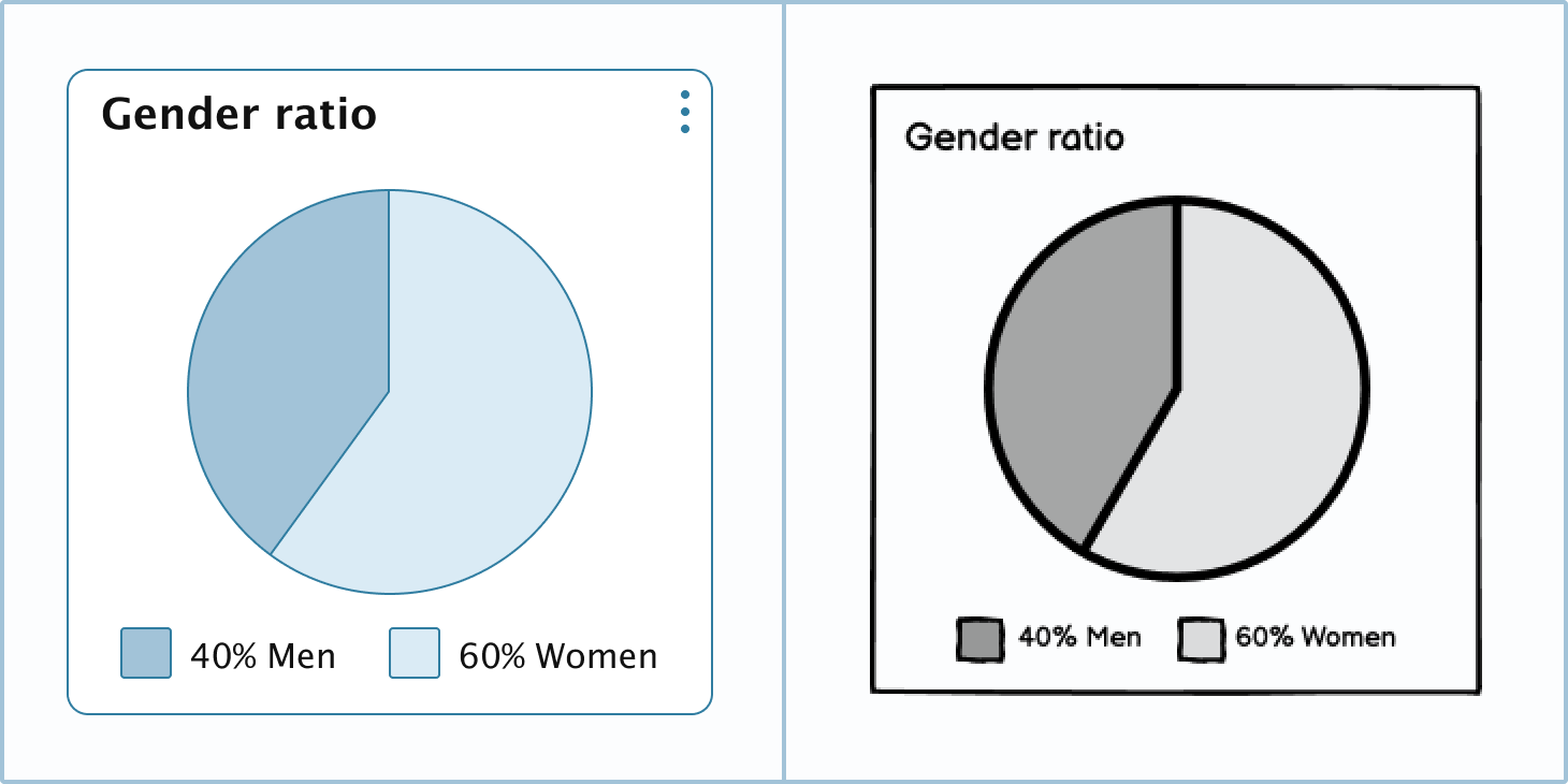 On a user interface dashboard, pie charts are usually used to compare different groups.