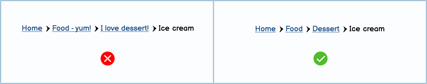 Because breadcrumbs use page names as part of their structure, it’s recommended to keep parent page names as specific and short as possible.