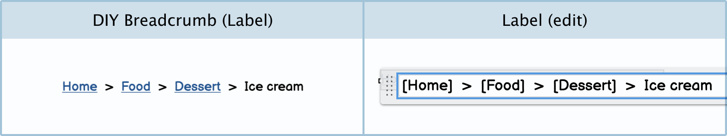 DIY breadcrumbs: You can create your own breadcrumb using a label component.