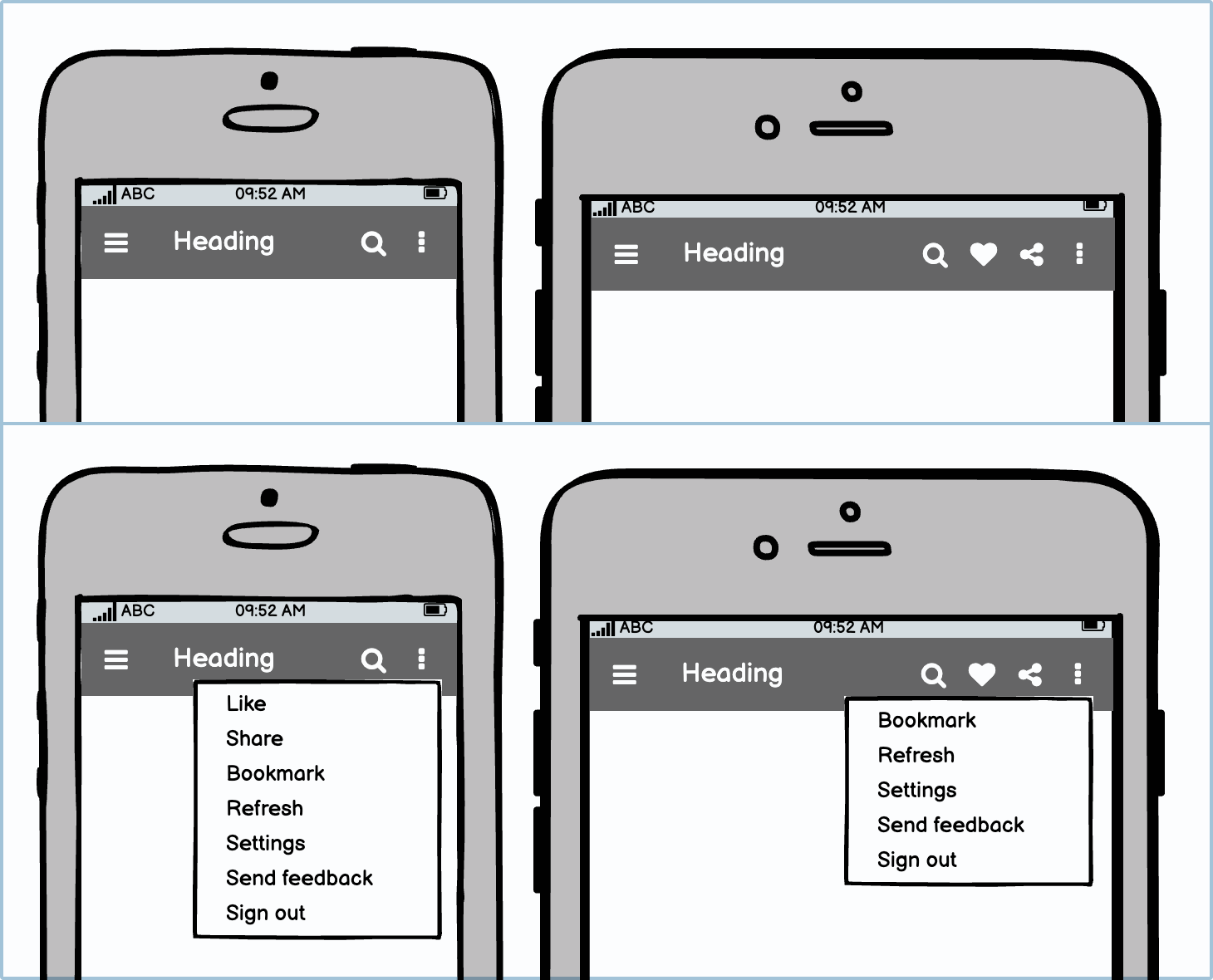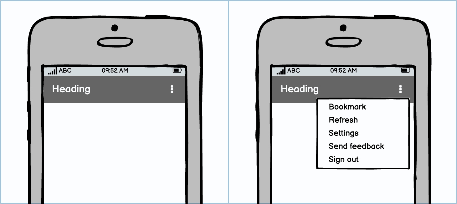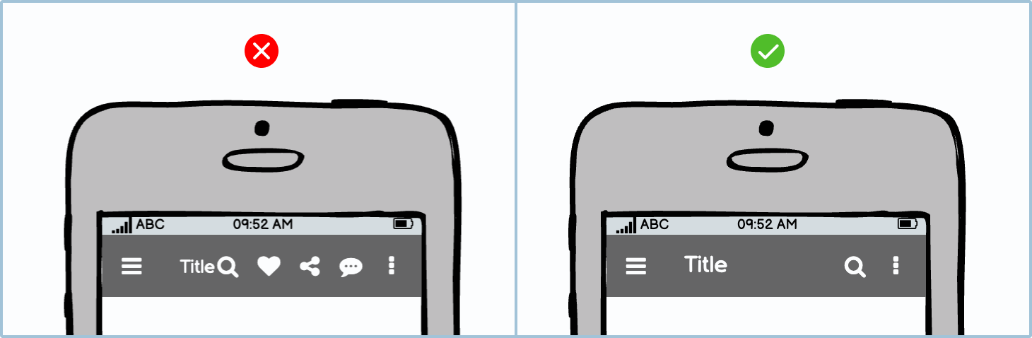 In an ideal world, users would be able to see all the essential options all the time. However, smaller devices and screens just simply don’t allow for that. You can display some of the icons on larger phones and then collapse them into the options menu on smaller ones.