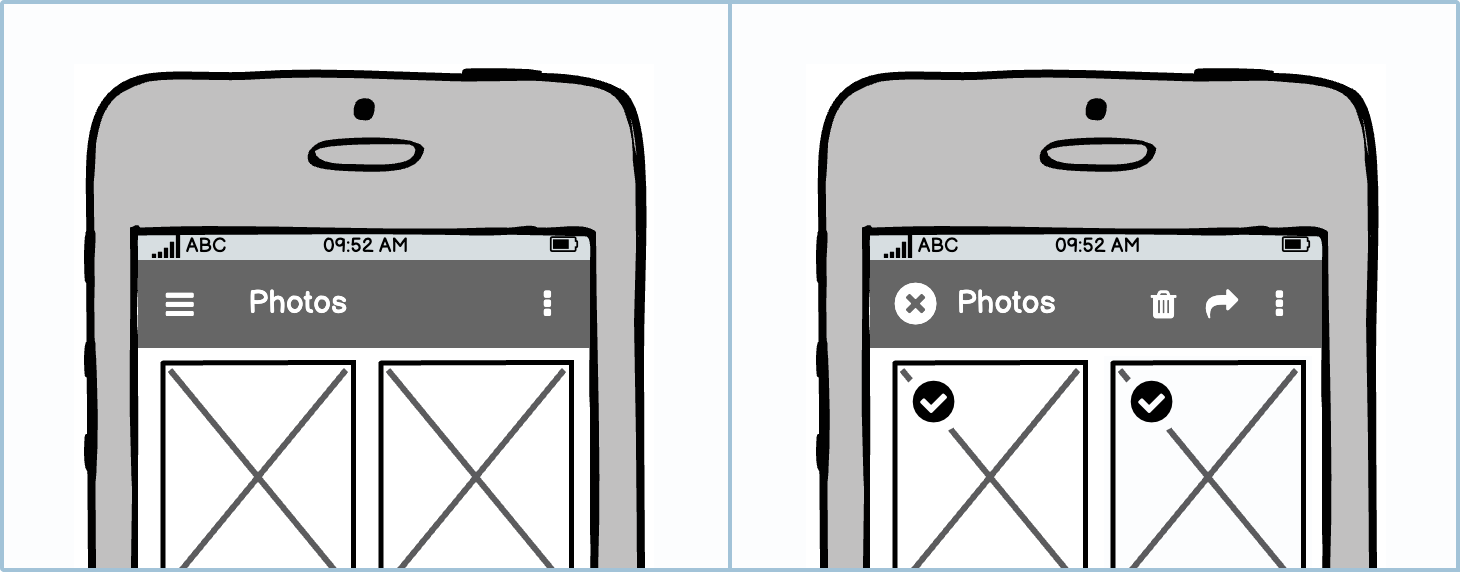 When selecting multiple items, such as images, your heading bar may change to show you what new options are available.