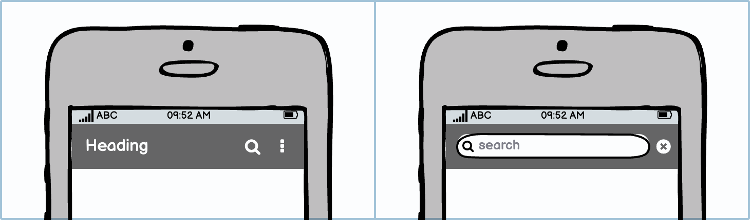 A search box will usually take over your app or site’s top bar because of the limited space.