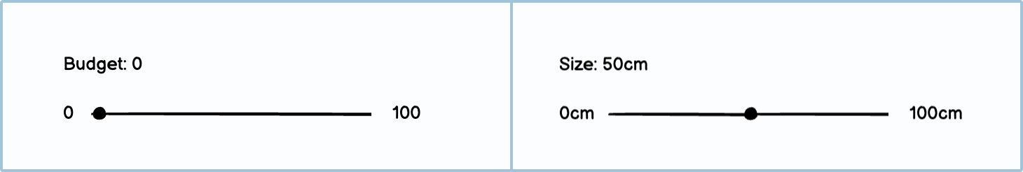 Horizontal is the most common orientation for sliders. They’re often found in online application forms (e.g., a loan application) and used to refine search results (e.g., setting the max price for a hotel).