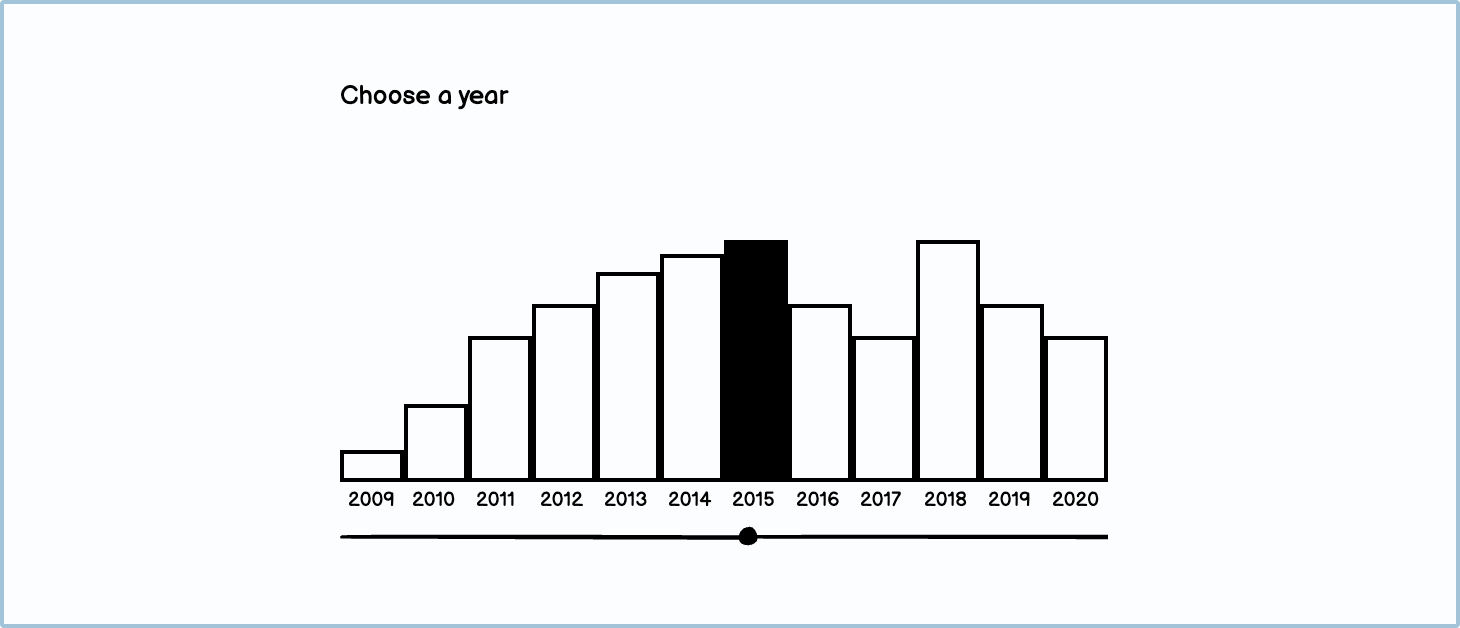 When designing sliders that will show you search results, consider graphically showing the number of results the user will get. An example of this would be to show a user who is setting a price point on holiday accommodation how many homes are available at each price point. Another example would be to graphically show a user who wants to find news articles on a topic from a specific year how many articles on that topic were written each year.