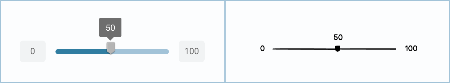Slider with ticks: A slider with ticks forces a snapping motion to the slider’s thumb. You can create your own by adding small vertical lines to the bar.