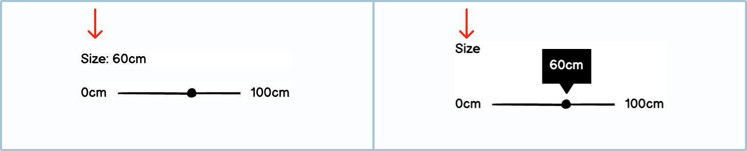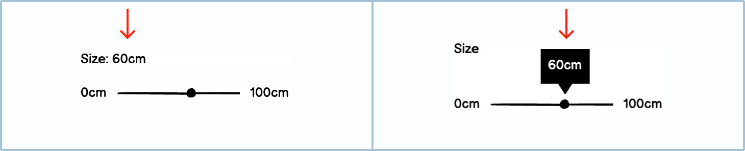 A slider should always display a readout value so that the user knows what they have selected. The readout can either be part of the slider component or separate from it, so long as it’s clear what it is.