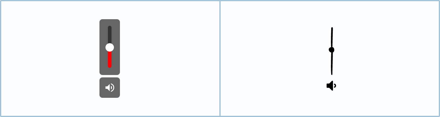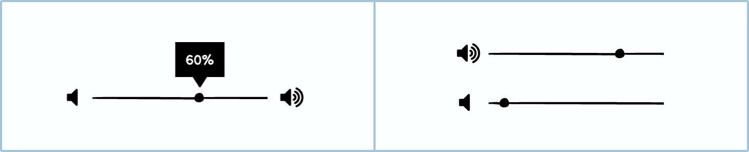 Volume slider: A volume slider allows the user to set the volume of audio or video media.