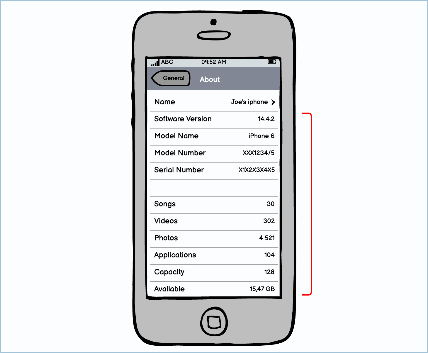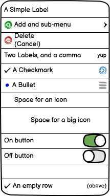 iOS menus don’t have to always be settings and submenus; they can also be used to display information. Due to its design, an iOS menu can work as a table with the “label” column on the left and the variables in the right-aligned column.