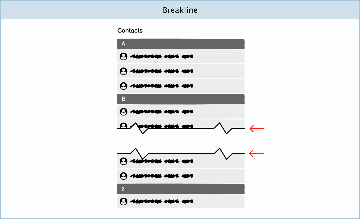 Breakline: A breakline is used to show that a page or design has more to it that isn’t currently expressed in the design. This is especially useful when your design has a very long scroll.